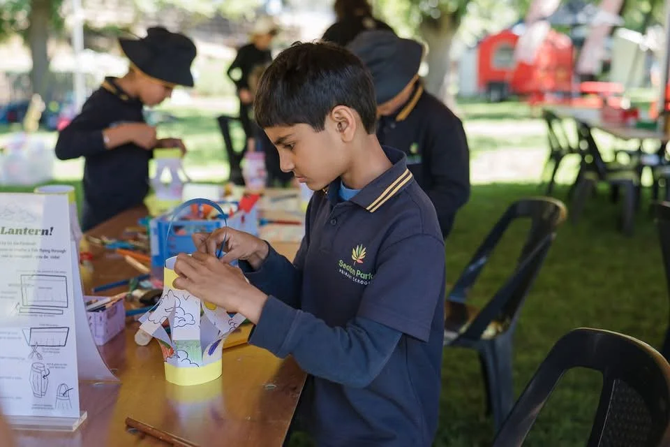 Across the festival weekend, the space shifted into a lively drop-in studio, inviting families to build miniature lanterns at their own pace. Each lantern became a tiny vessel for wonder, created with layered papers, bright markers, and achievable construction techniques.
